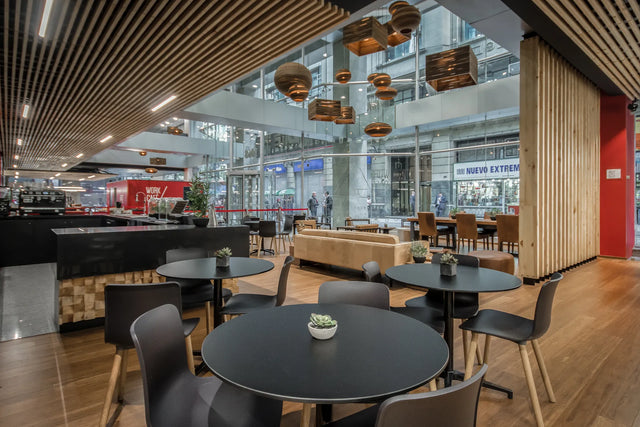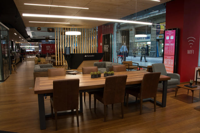El concepto “work café” puede implementarse de forma cerrada para los empleados de una empresa o abierta a clientes como lo hizo Santander. En los últimos dos años, Bash Interiorismo ha desarrollado ambos conceptos con gran éxito en nuestro país.