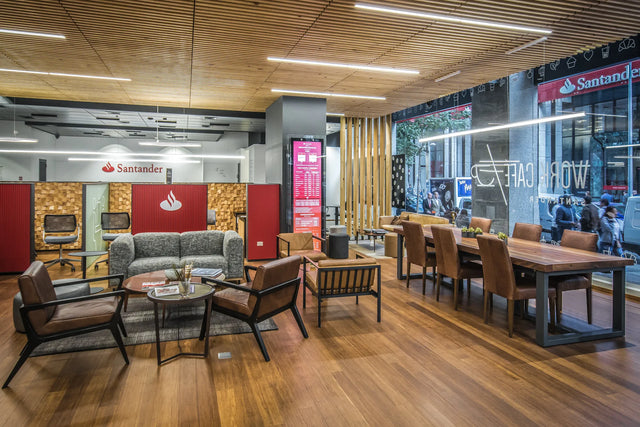 Esto, debido a la implementación del concepto “work café”, que tiene como propuesta ambientar lugares abiertos que funcionen como prolongaciones del trabajo, donde se fomente la creatividad, la eficiencia y nuevas ideas. El caso del Santander ha sido uno de los más exitosos en nuestro país e incluso ya se planea replicar en otras partes del mundo.