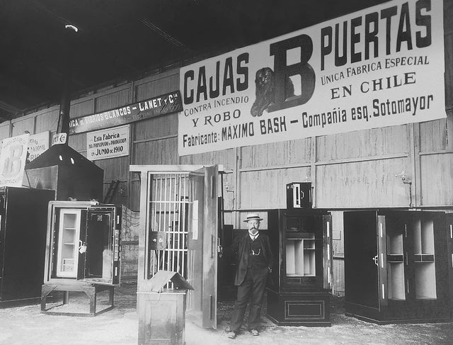 En pleno auge salitrero y bajo el gobierno de Balmaceda, Máximo Bash establece la primera fábrica chilena de cajas de seguridad, puertas de bóveda y muebles metálicos, respondiendo a la demanda de protección de capital en bancos e instituciones públicas.