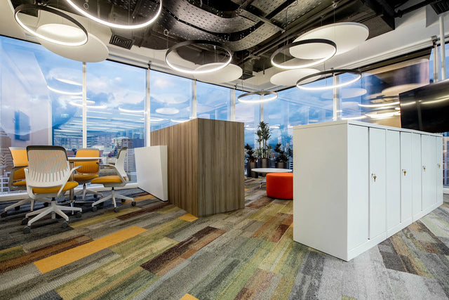 En tanto, toda la sillería para puestos de trabajo corresponde al modelo Think de Steelcase, de alta gama y ergonómicas, que se ajustan intuitivamente, proporcionando una posición sentada cómoda y saludable en todo momento, mientras que en las salas de reuniones, se utilizaron los modelos Cobi y Qivi.